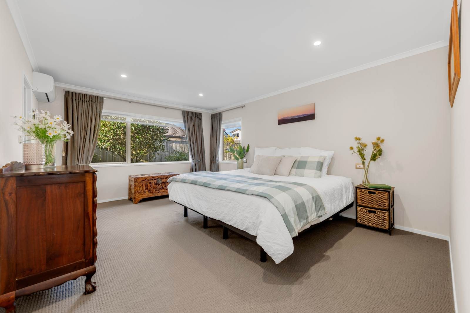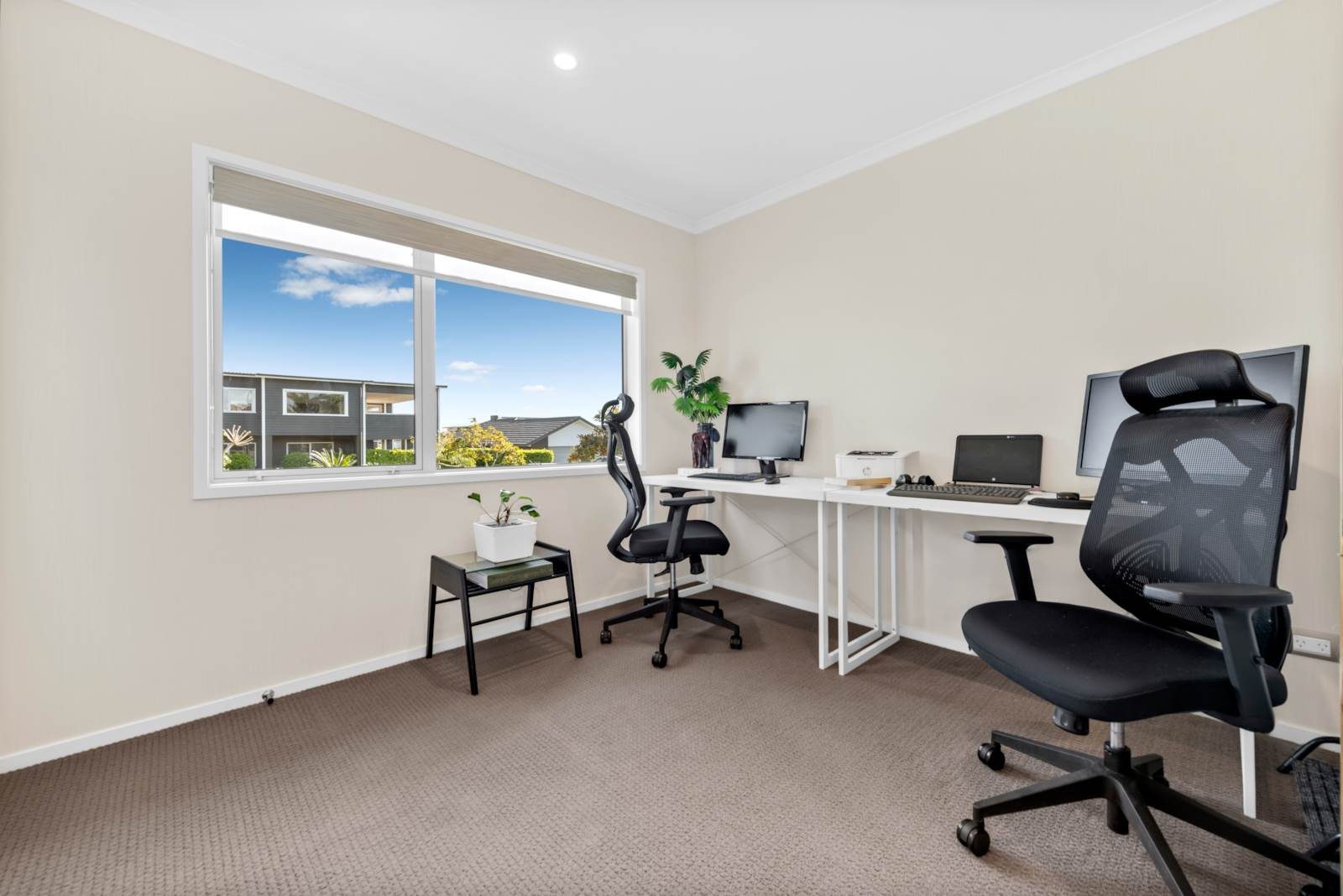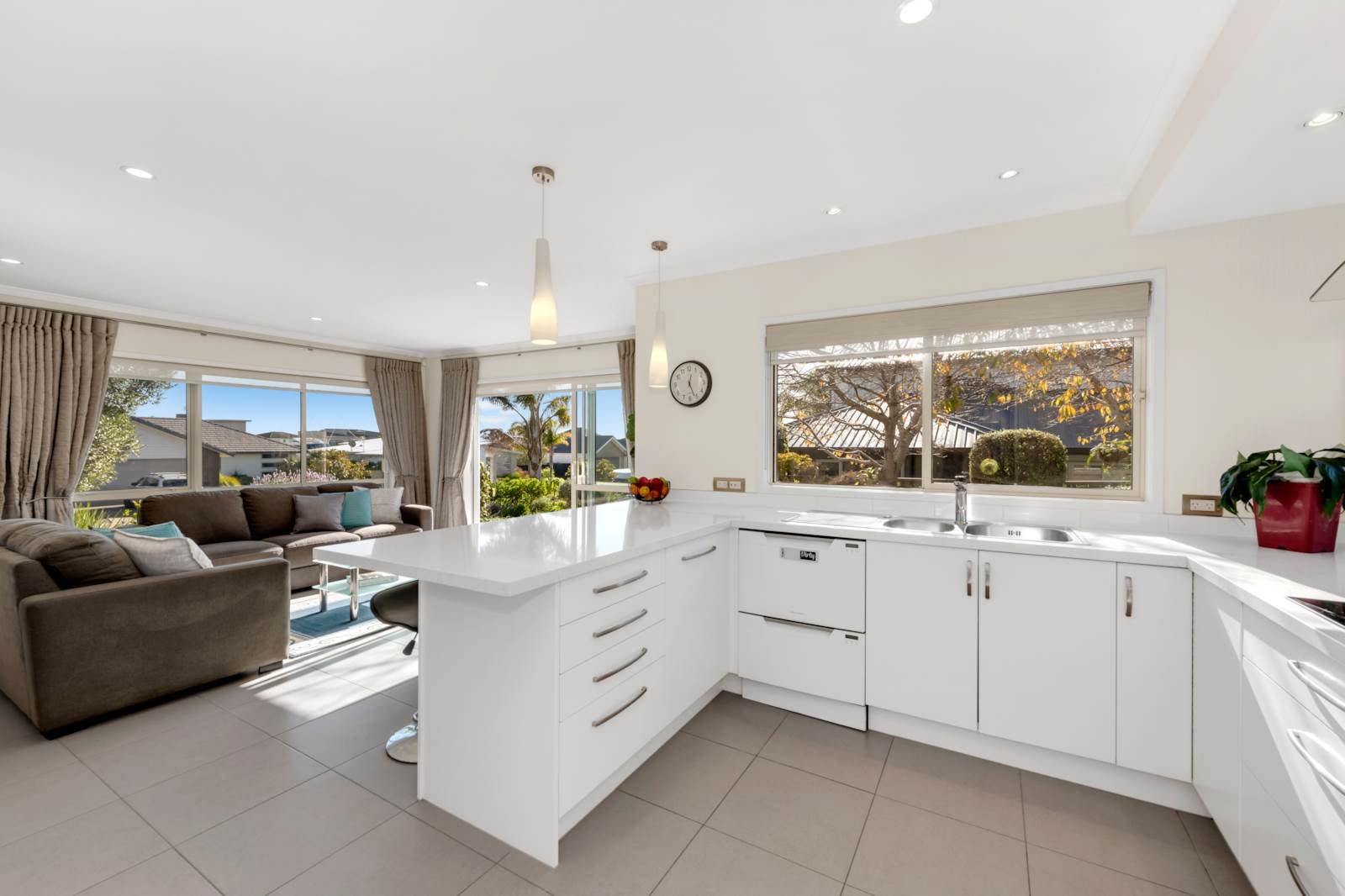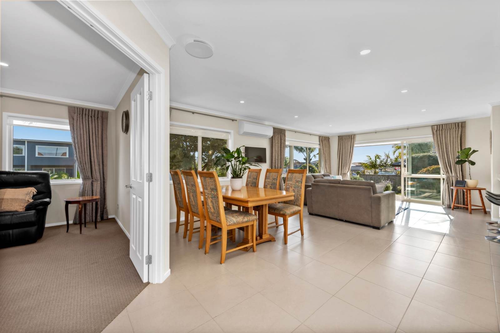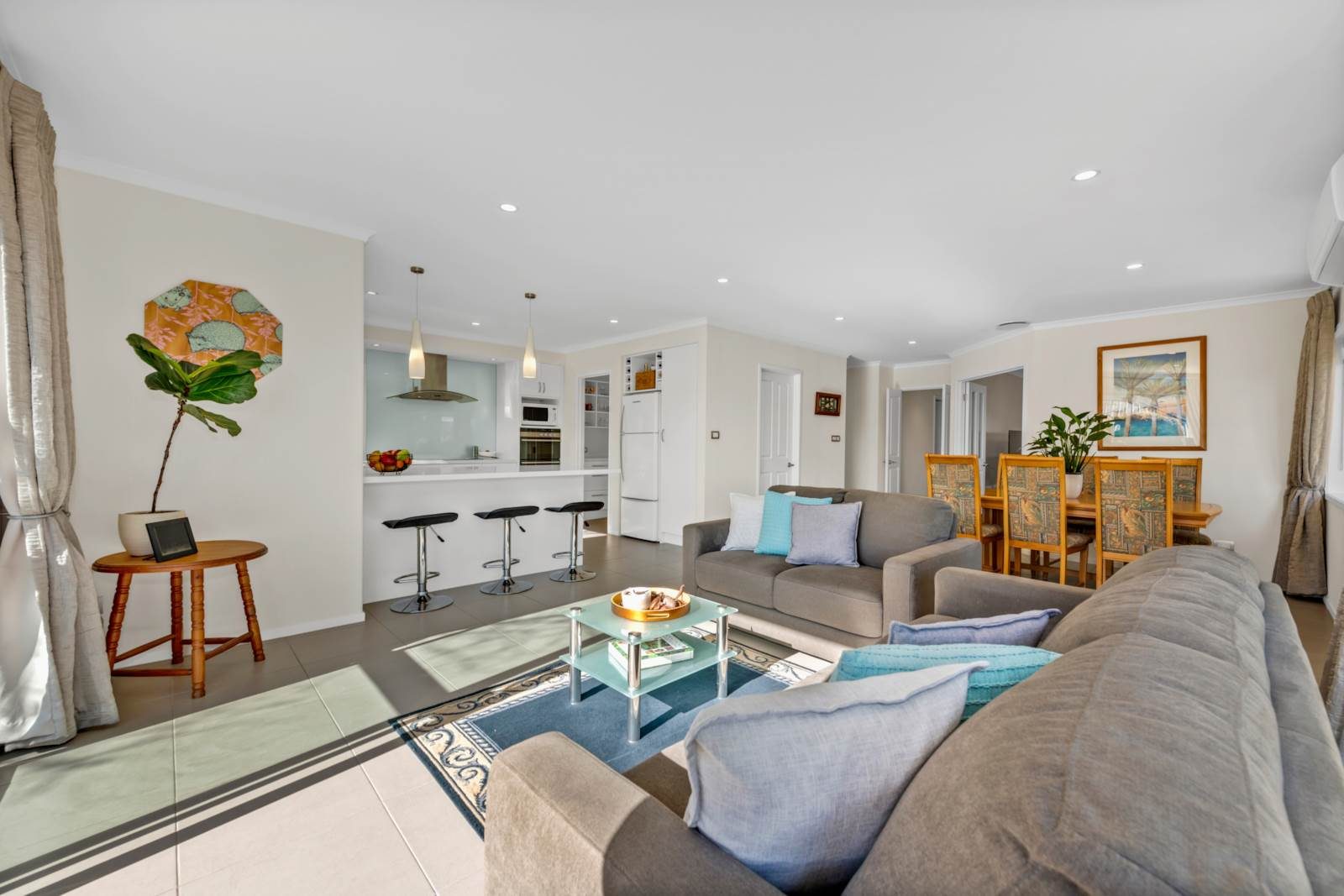Step inside and discover a light-filled modern home designed for effortless living. The heart of the home is a spacious open-plan kitchen that includes a butler's pantry and features an induction cooktop, double wall ovens and dish-drawers. The dining, and living area opens to a north facing patio area. Beyond the main open plan living area, a separate lounge provides a dedicated retreat for movie nights, a kids zone, or a quiet space to relax. With four generous double bedrooms and two bathrooms, there's ample flexibility for growing families, guests, or a dedicated home office. Designed for your year round comfort there's double glazing, 2 heat pumps and a ventilation system.