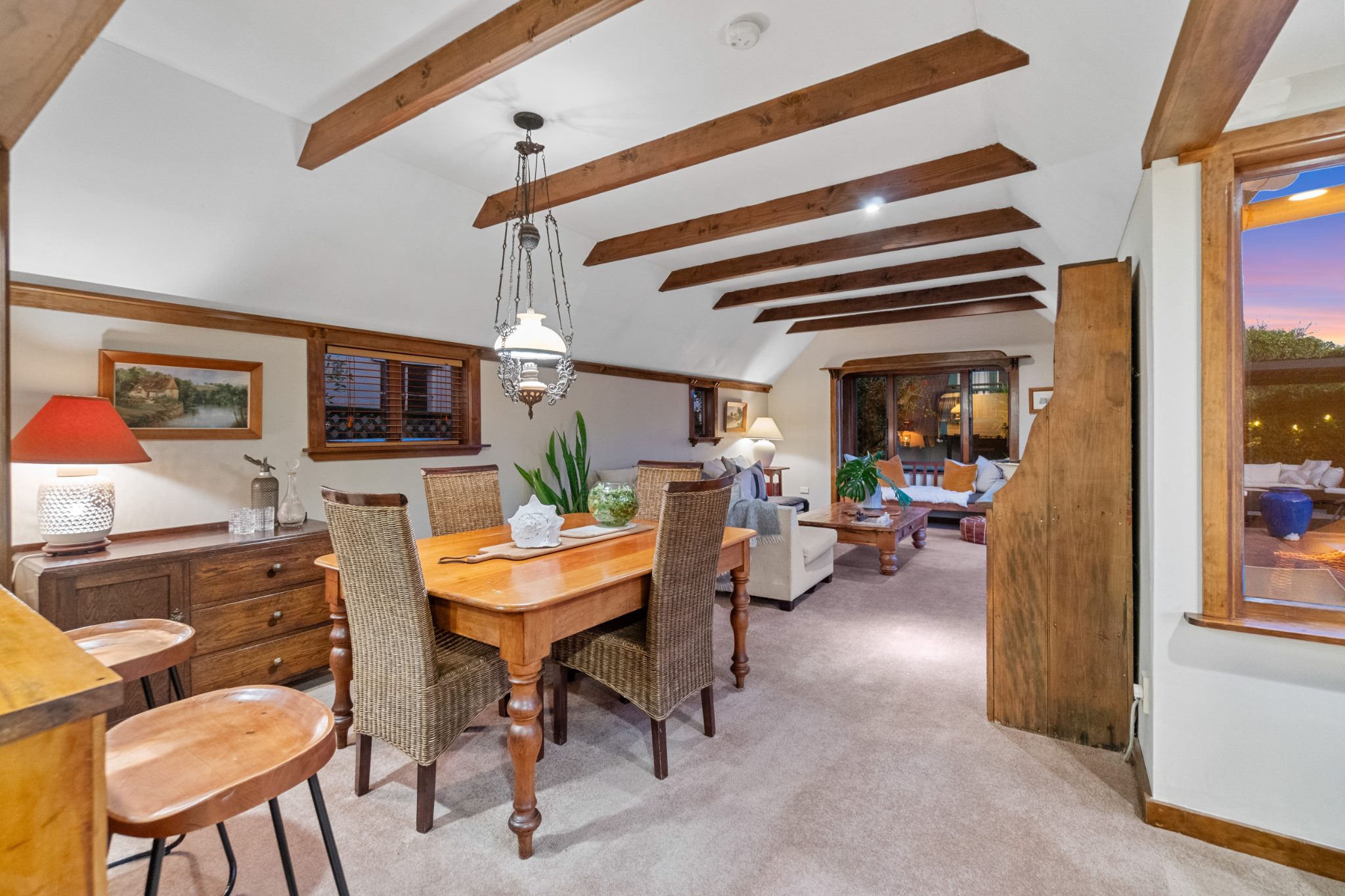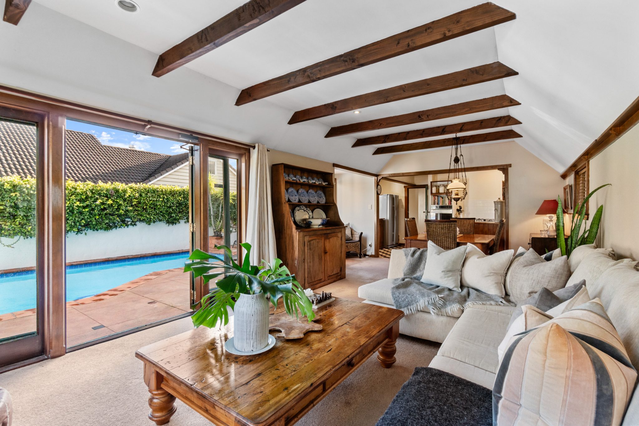 At the heart of the home is a light-filled living and dining space that flows seamlessly to the outdoors, where a private garden sanctuary and swimming pool invite long summer lunches, quiet evenings, and gatherings with friends. A separate studio provides incredible versatility, whether you need a creative space or a dedicated home office.