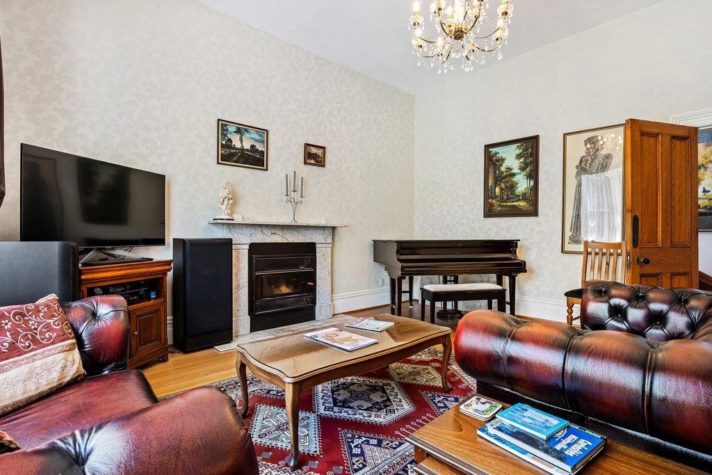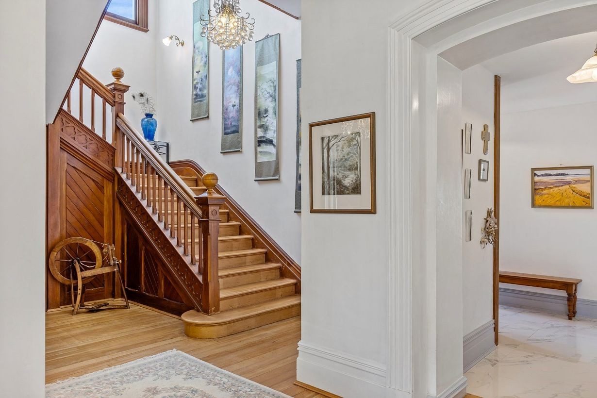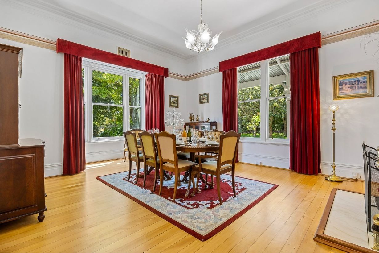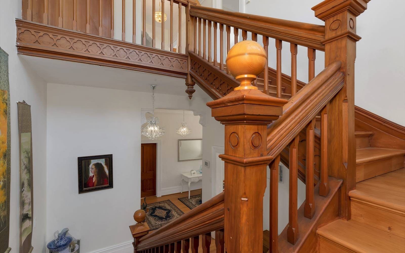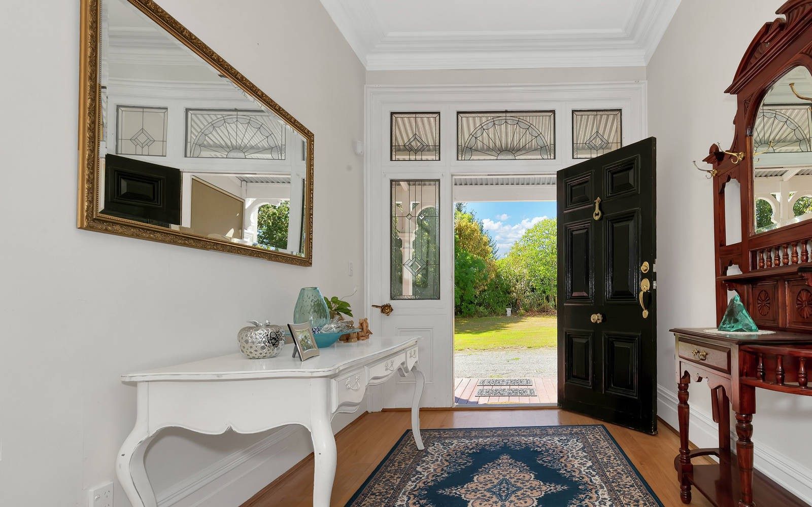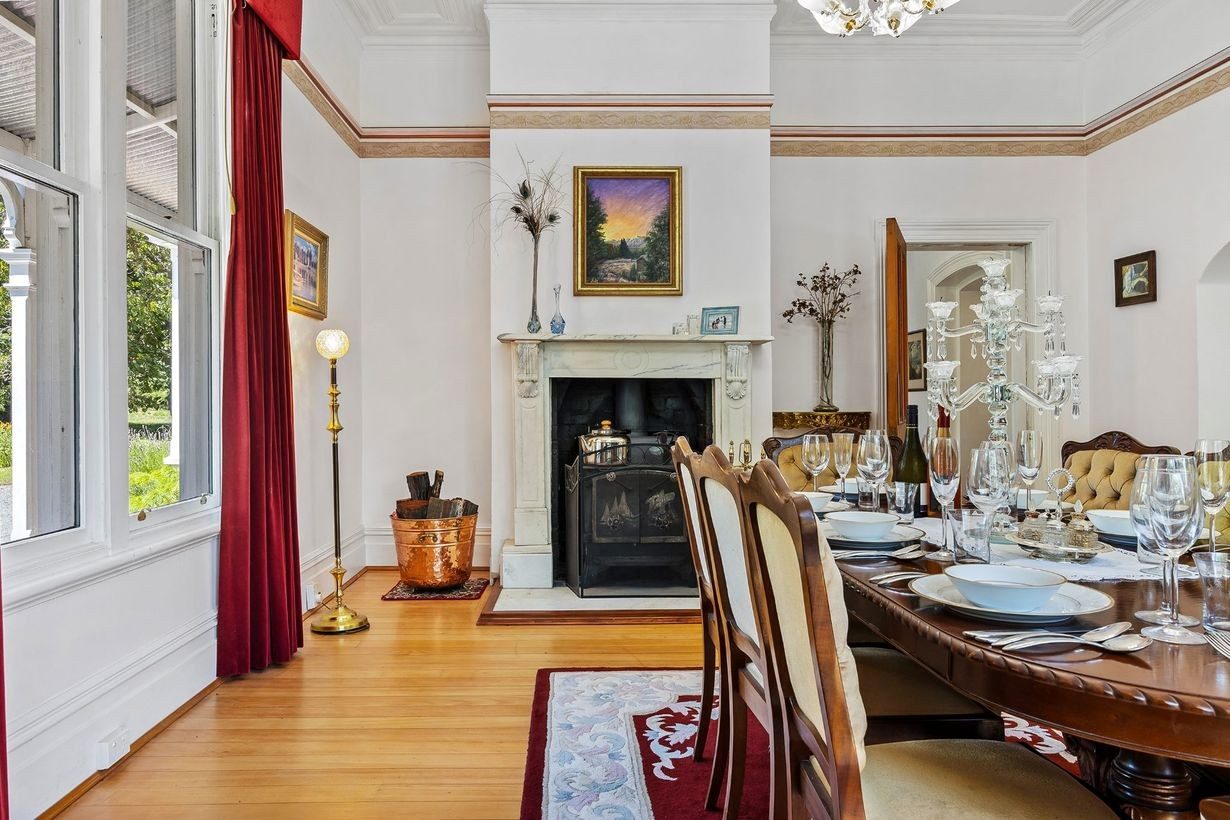Proudly 150 years old, this landmark homestead has been lovingly restored, combining historic elegance with modern comfort. Inside, you'll find polished kauri floors, a sweeping staircase, chandeliers, ornate plasterwork, marble fireplace surrounds, and charming paned windows.