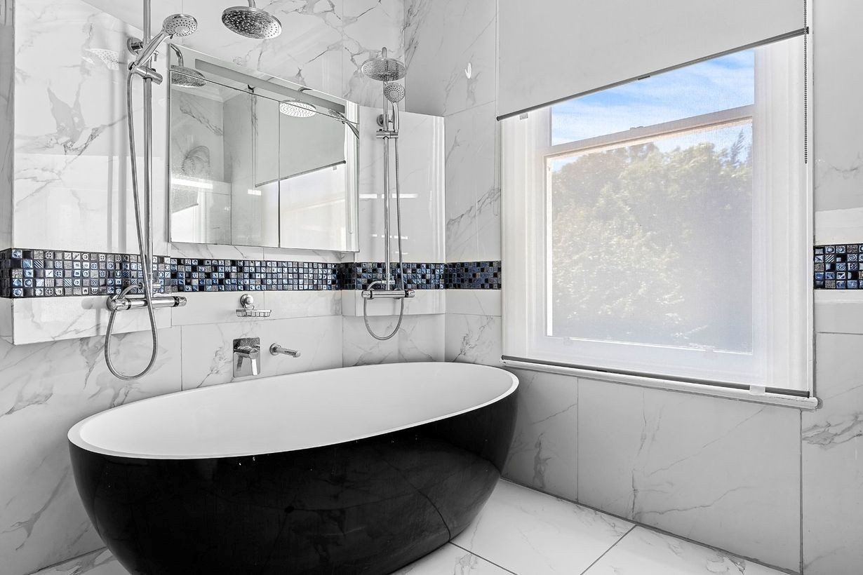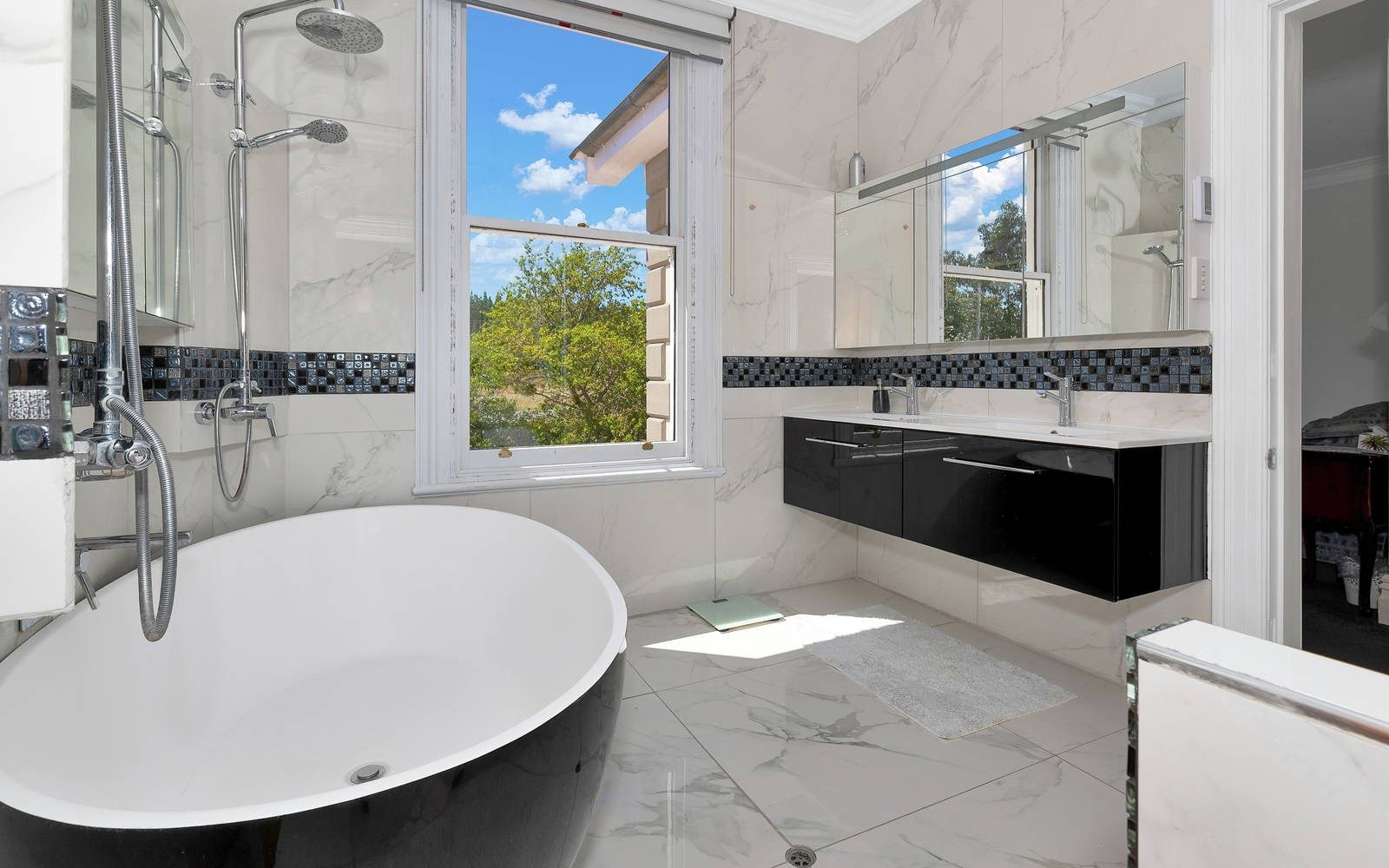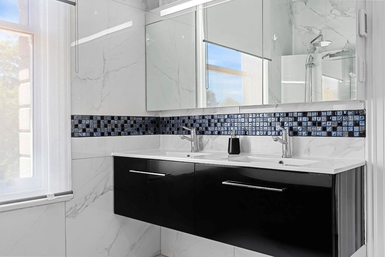 The home offers five generous bedrooms - three with private en suites - plus an Art Deco bathroom downstairs. The luxurious master suite includes a walk-through wardrobe and en suite with chandelier and oversized tub.