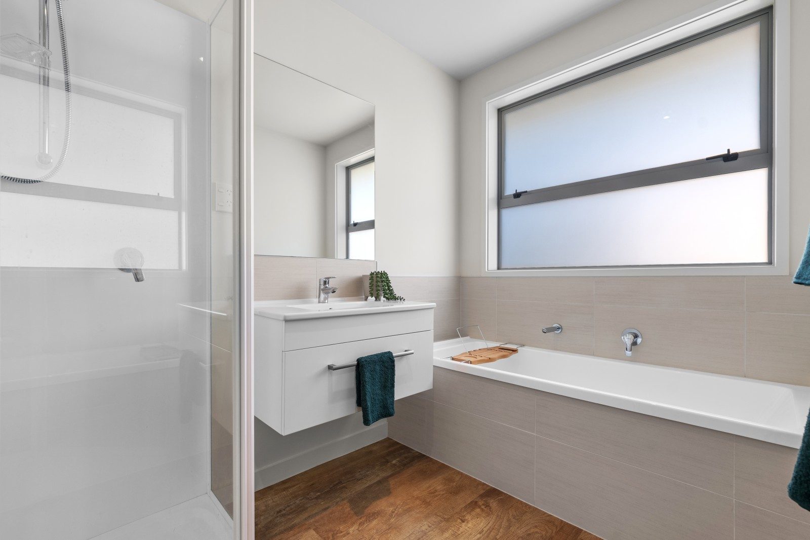At its heart is a modern, sophisticated kitchen with clean lines, sleek stainless-steel appliances and a black subway tile splashback - perfectly placed between open plan dining and your choice of two living spaces. Whether you want to divide the areas into formal and informal zones, create a play or media area or work from home in peace, there's room for it all.