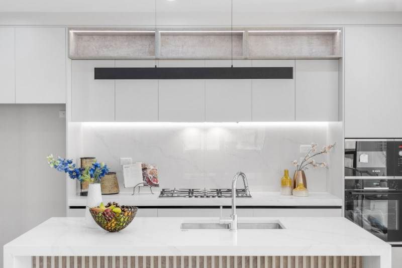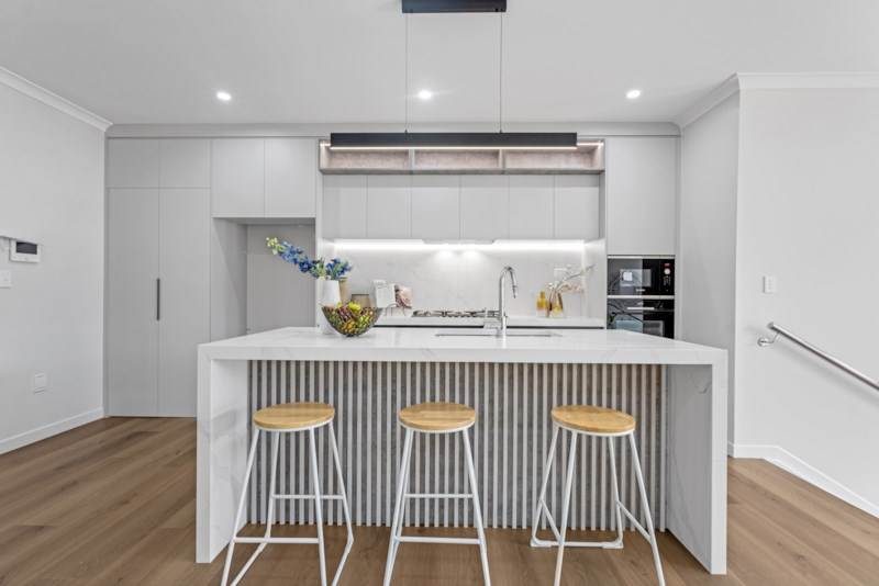 The layout includes a two-bedroom granny flat with its own private access, en-suite, and lounge area, making it ideal for guests or extended family. Upstairs, two master suites feature modern en-suites and spacious walk-in wardrobes. A formal lounge provides a quiet space for meetings or relaxation, while the main kitchen is complemented by a butler’s kitchen and fitted with high-quality appliances and a central island for everyday use and entertaining.