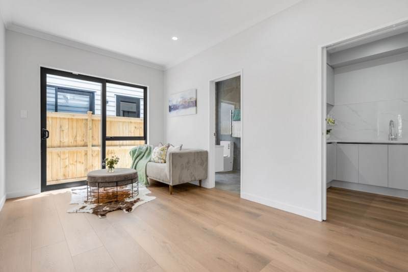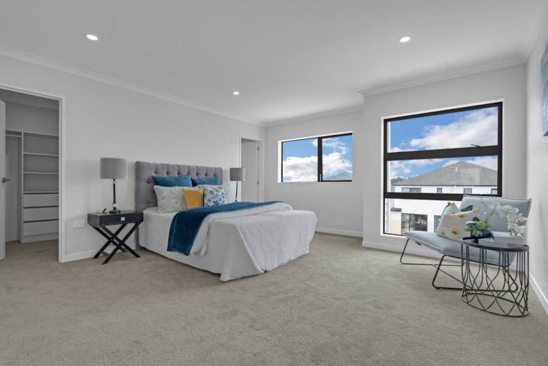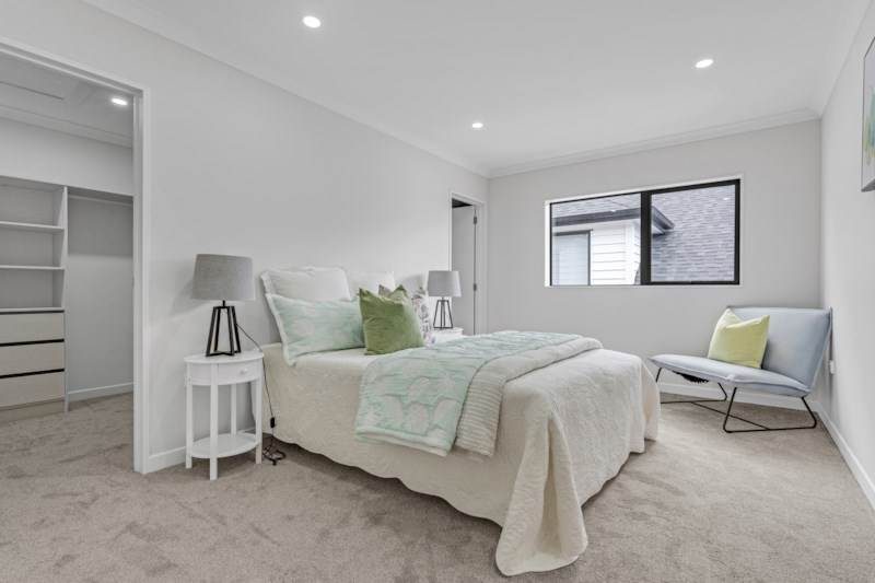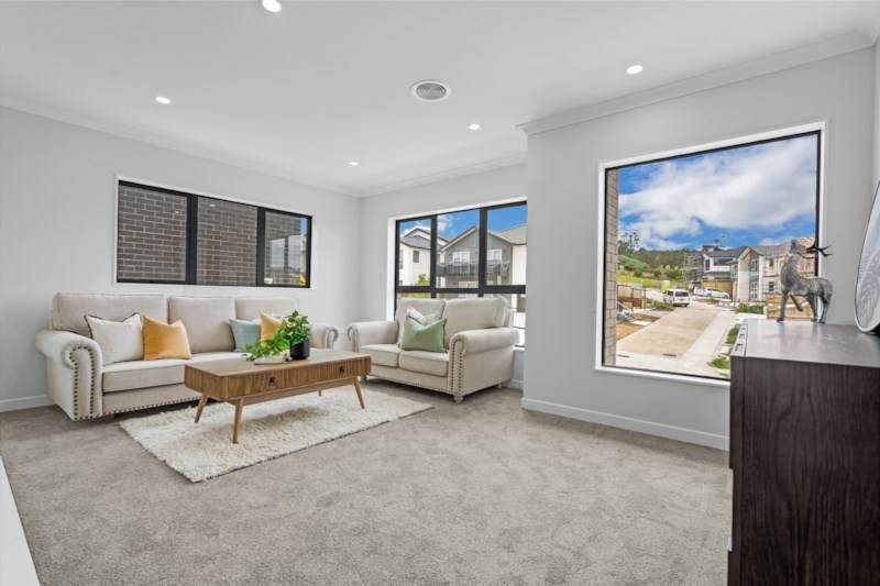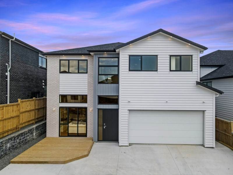 Additional features include central air conditioning, a central vacuum system, intercom, alarm system, double glazing, and an internal access double garage. The home is fully fenced and sits in a location close to Botany, Manukau, motorway connections, and the upcoming Ormiston Town Centre.