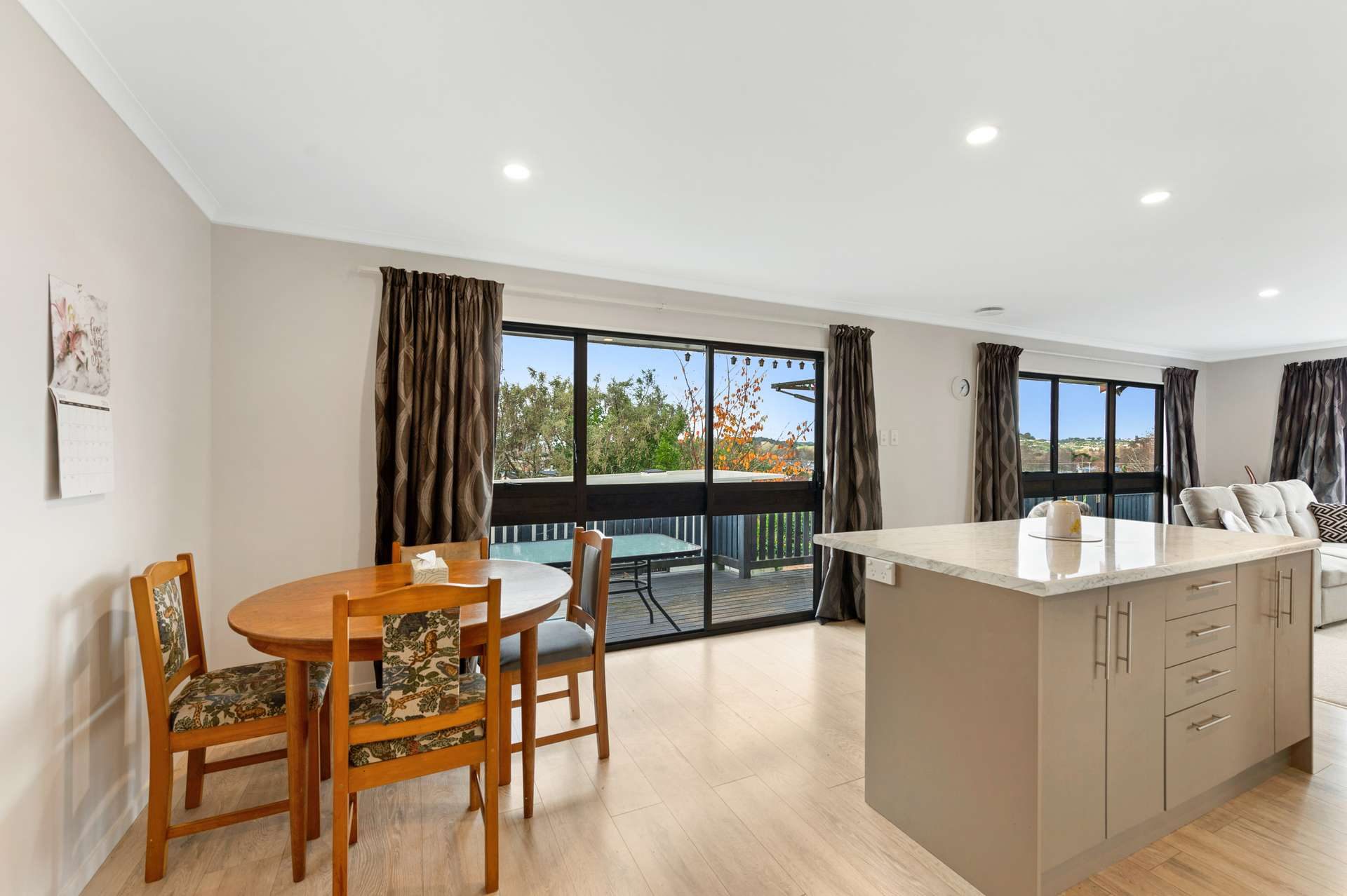 Open-plan stylish living space is both bright and inviting, with fabulous layout, charming decor and heat pump for year round comfort and excellent insulation. Sliding doors open out seamlessly to an elevated balcony with wonderful views – a fabulous spot to relax and unwind with endless views out to the horizon.